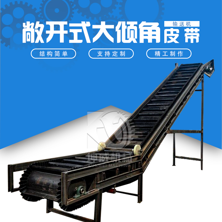4、大傾角輸送機(jī)的設(shè)備簡(jiǎn)單,拆卸安裝維護(hù)方便。節(jié)省了大量設(shè)備占地面積,能夠用于各中安裝使用環(huán)境,能耗低、結(jié)構(gòu)簡(jiǎn)單、維護(hù)方便。